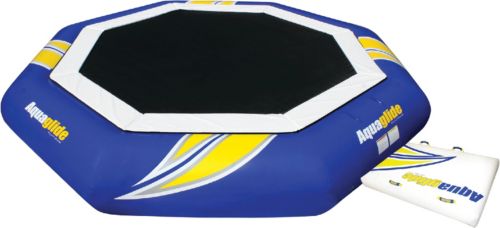 Fly through the air in style with the Aquaglideï¾® SuperTramp 23ï¾? 5-Person Aquatic Bouncer. This five person inflatable bouncing platform combines a steel Octaneï¾? frame with an eight-sided design for better bounce than round trampolines. Commercial-grade PVC material, steel frames and springs all provide supreme durability that stands up to continuous use. A SwimStepï¾® platform and heavy-duty handles allow for easy boarding.